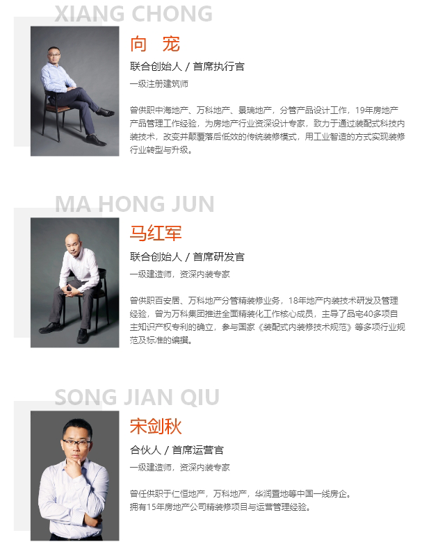品宅装饰科技的核心管理团队由来自万科、景瑞、恒大、华润、百安居等领跑